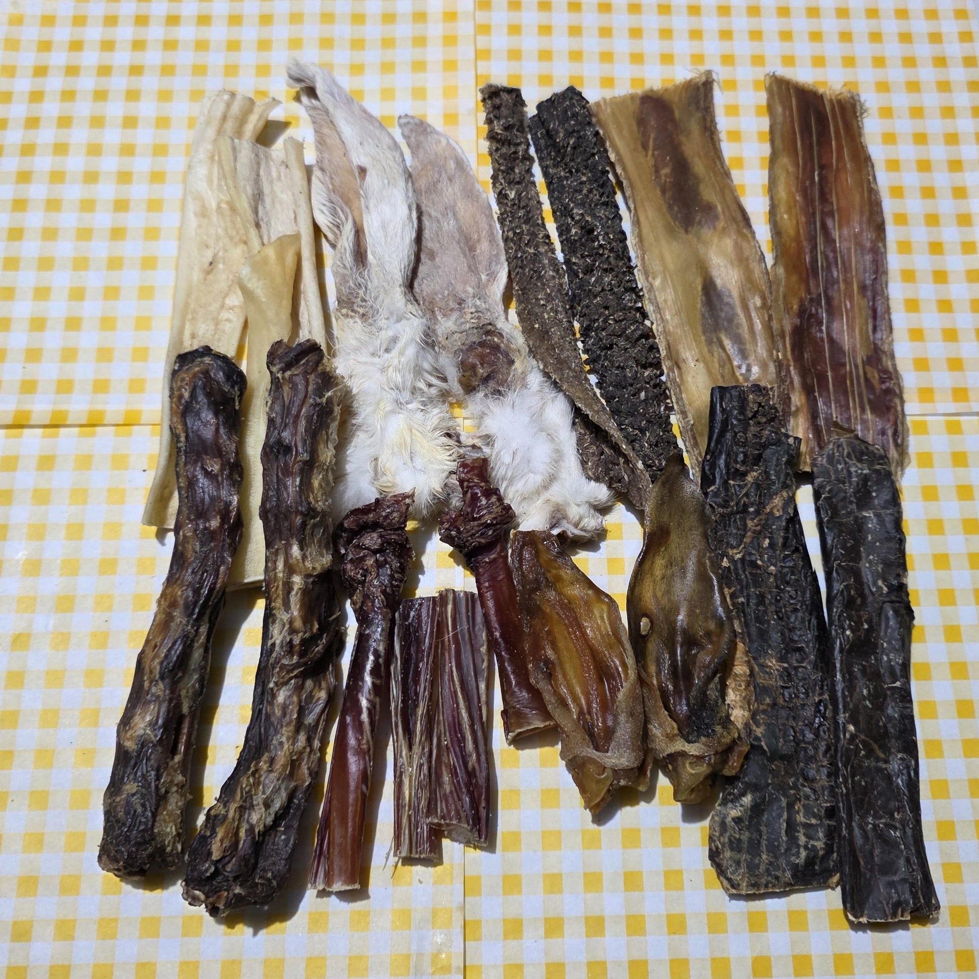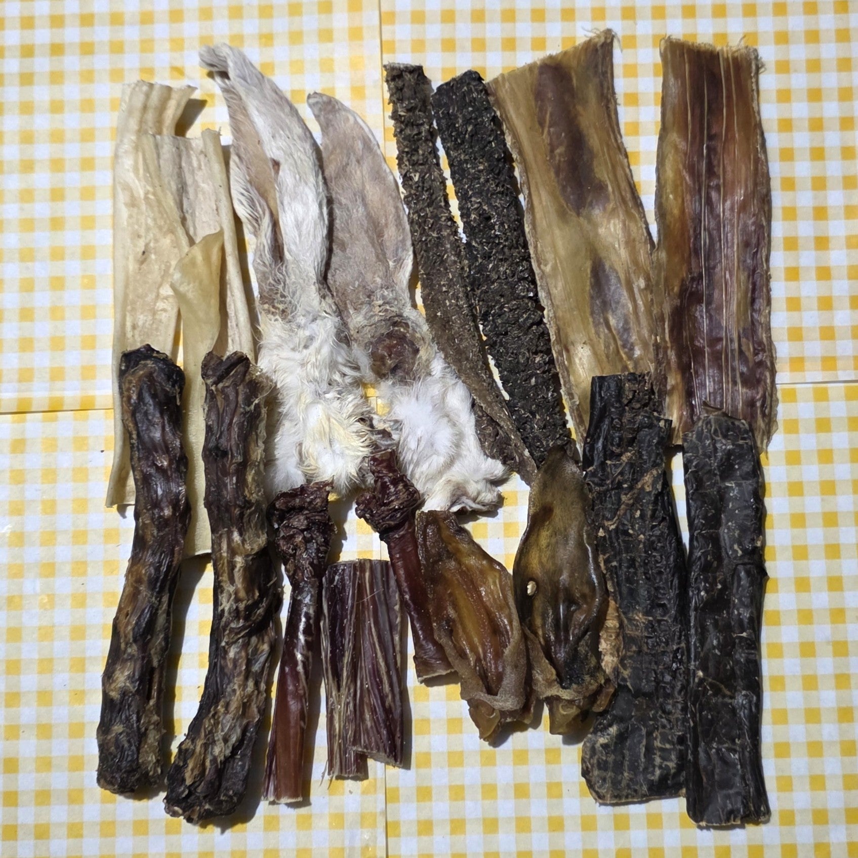 2 Beef Tripe, 2 Beef Muscle, 2 Rabbit Ears, 2 Lamb Ears, 2 Duck Necks, 2 Beef Gullet, 2 Beef Spleen, 4 Beef Pizzle Pieces