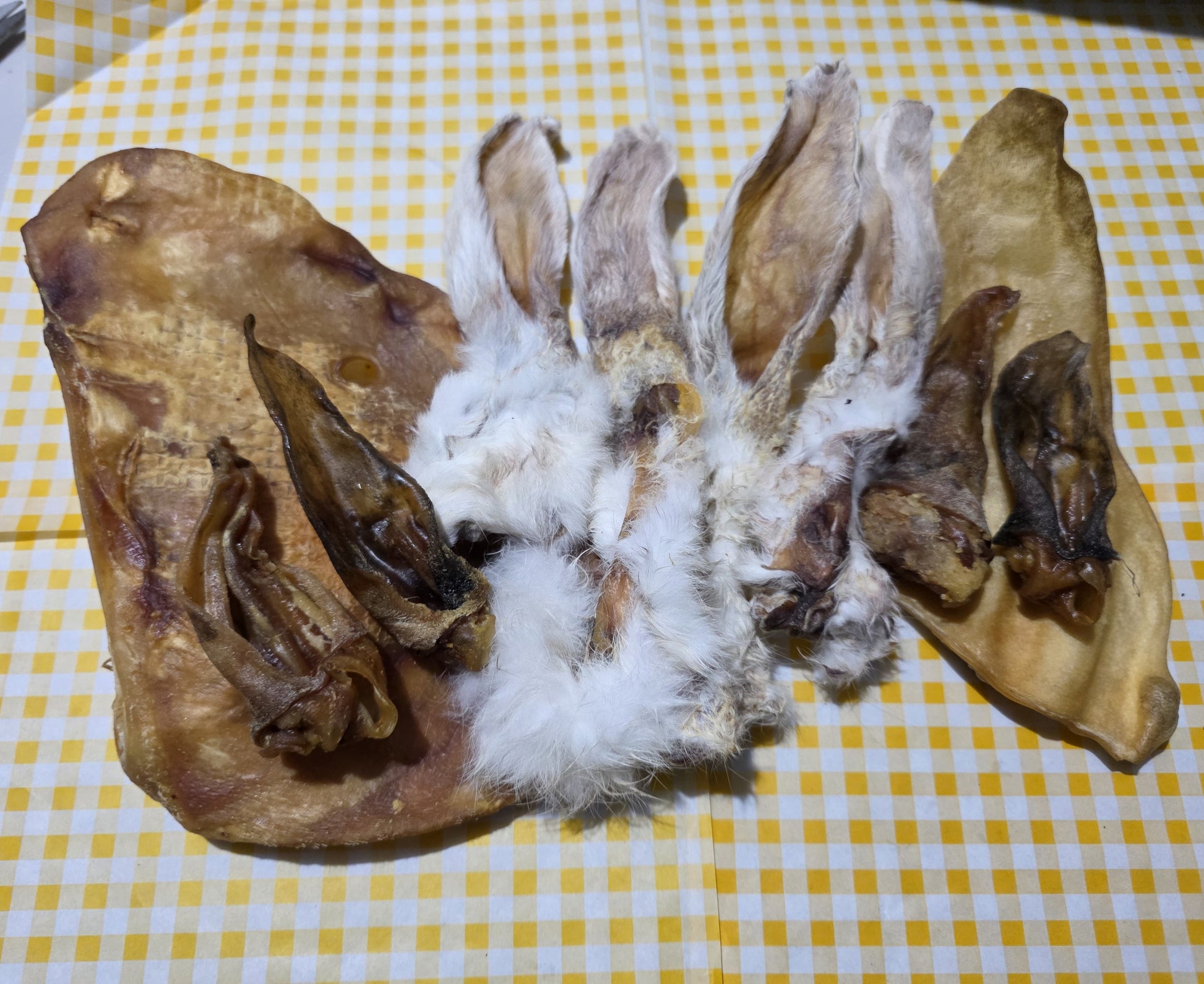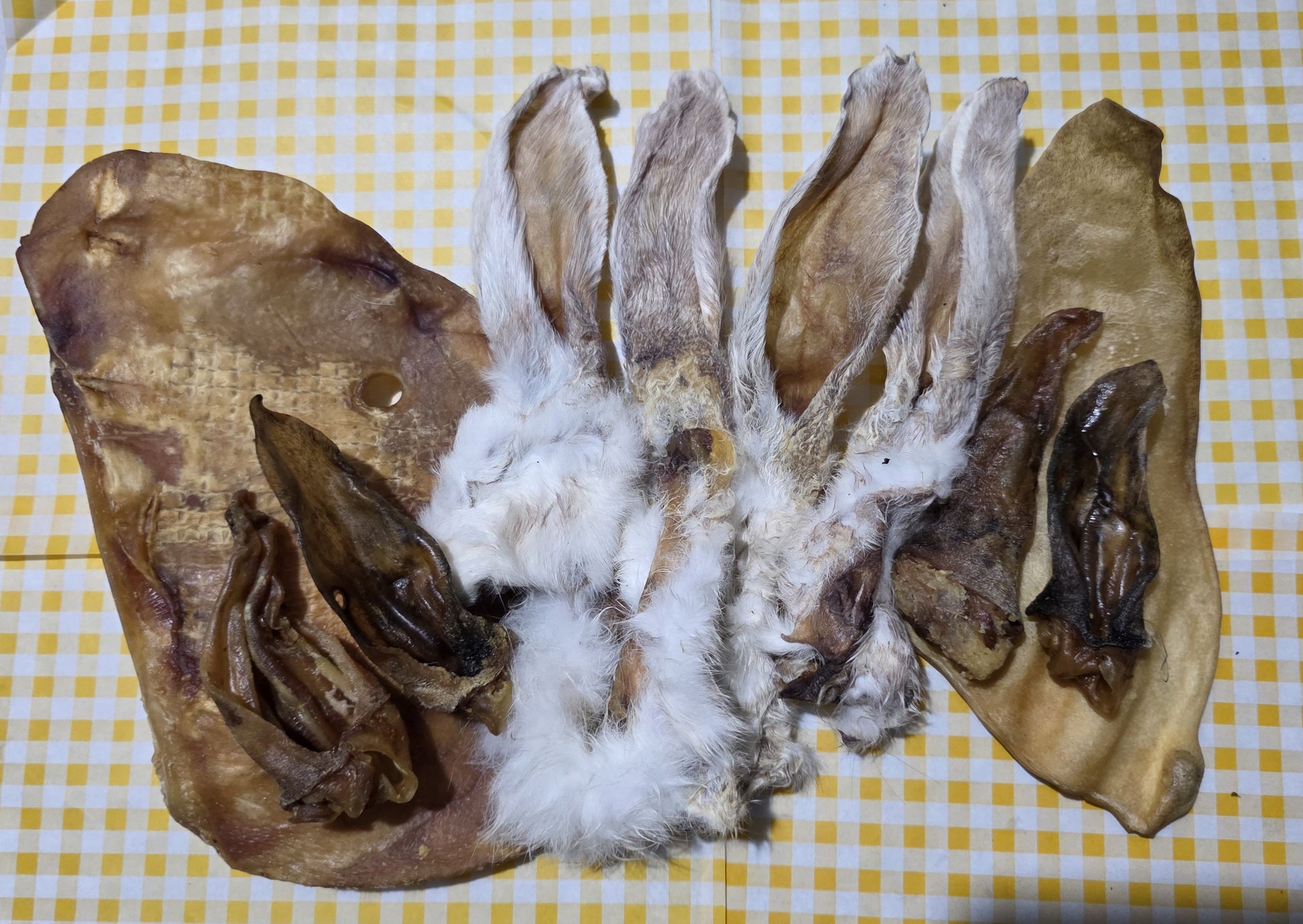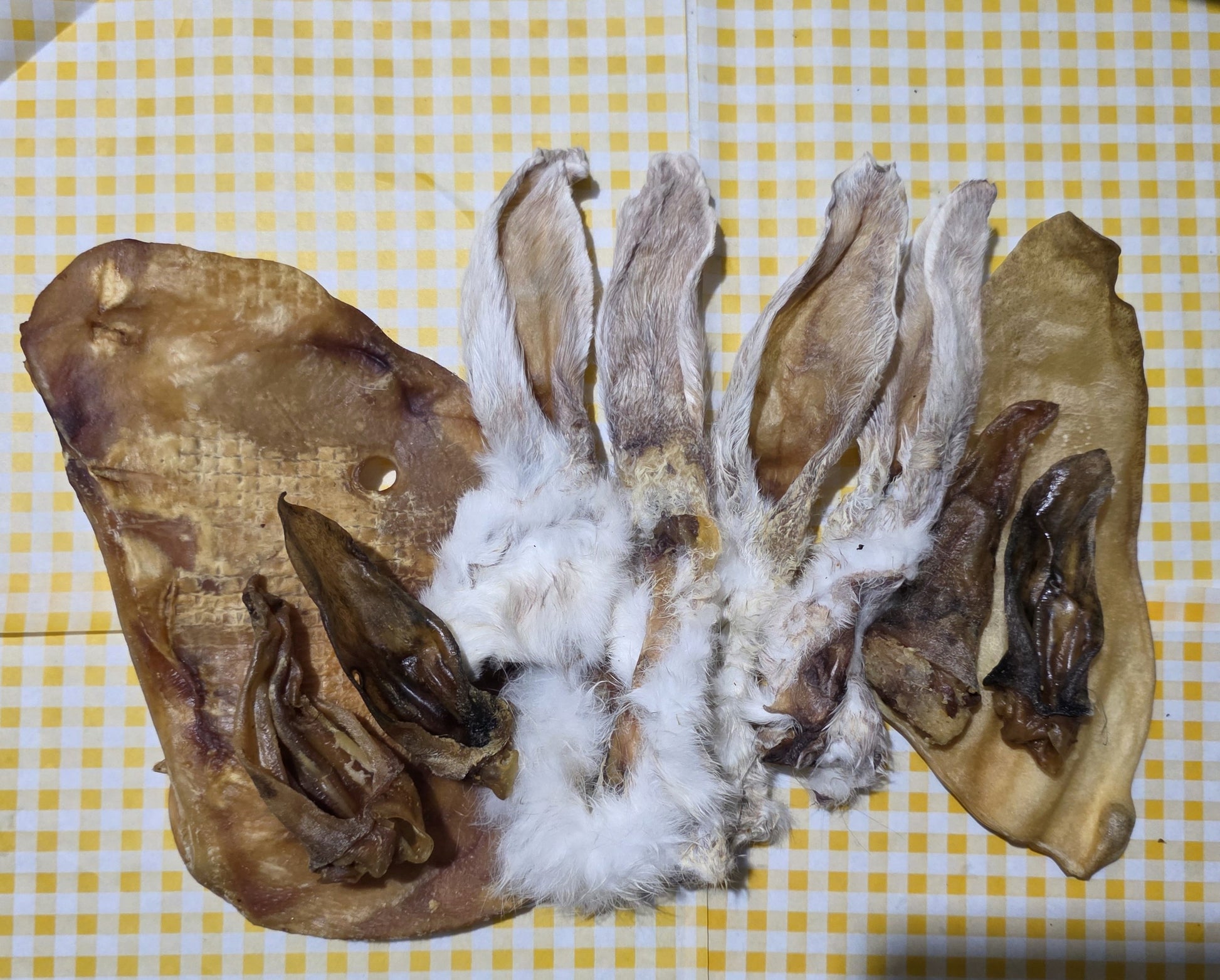 XL Pig Ear, Large Cow Ear, 4 Hairy Rabbit Ears, 4 Lamb Ears